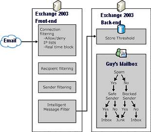 The combination of Intelligent Message filters on the Server and Junk email filter in Outlook, provide state-of-the-art protection against unwanted email.