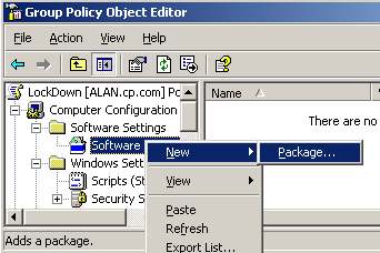 Back at your GPO, all you need to do is right-click on the Software Installation box and select, New, Package.