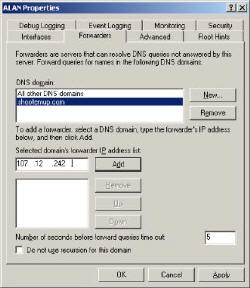 To summarise, the Condition is that one of your clients query is for shootemup.com. The Forwarding is to the IP address specified at the Forwarders tab of your DNS server.